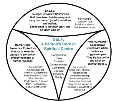 The Internal Family Systems (IFS) therapy model was first developed by Richard Schwartz, with the key principle being that you and I have “parts” within ourselves – sub-personalities like little people who have different goals and motivations. Just as the award-winning Inside Out movies so rightly portray, these “parts” we have on the inside have different levels of maturity, excitability, wisdom and pain; and on some occasions, one or more of these pesky little parts will tend to take over, “driving the bus”, so to speak, causing potential damage to both ourselves and others.